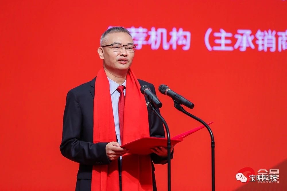 寶明科技董事長李軍在致辭中表示,公司成功上市,是各級領(lǐng)導(dǎo)和客戶大力支持的結(jié)果,是公司全體員工上下一心,努力奮斗的結(jié)果,也是各位來賓、各界朋友鼎力支持的結(jié)果。