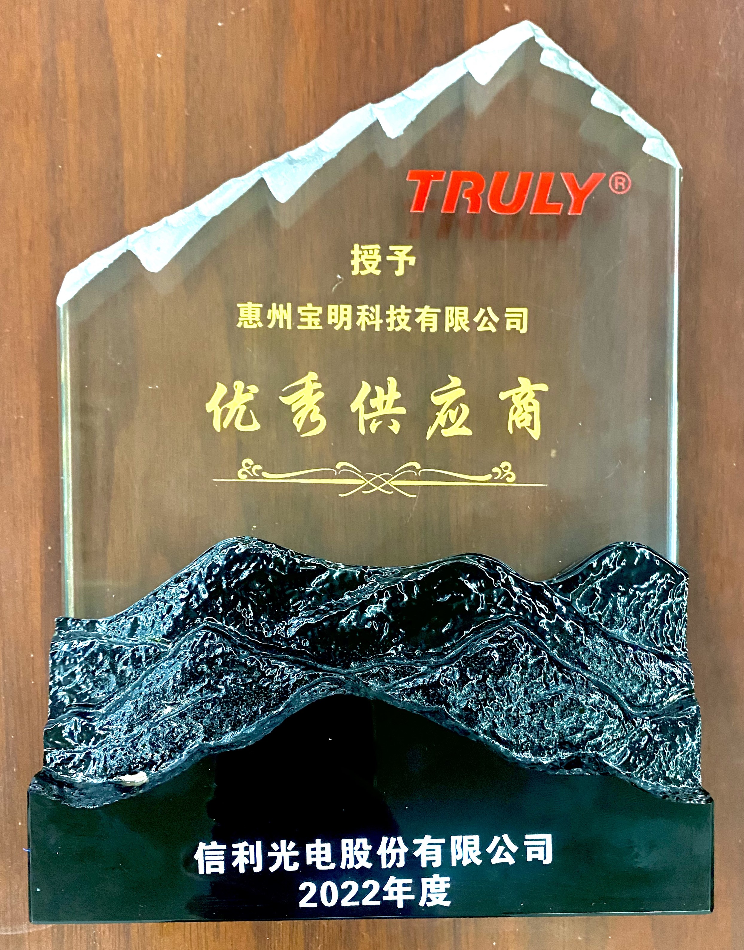 寶明科技榮獲信利光電“2022年度優(yōu)秀供應(yīng)商”獎(jiǎng)