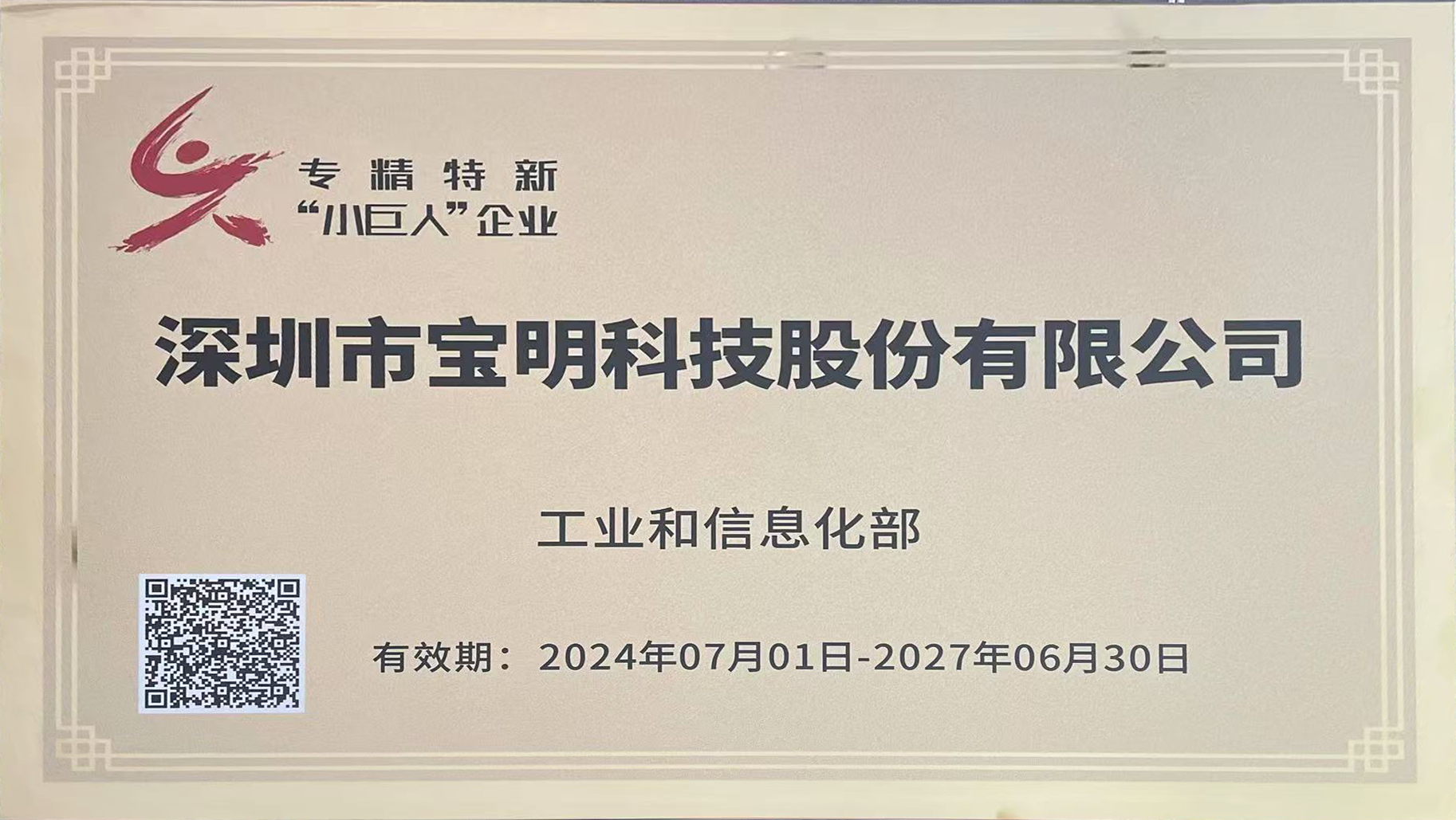 寶明科技榮獲國家級專精特新“小巨人”稱號